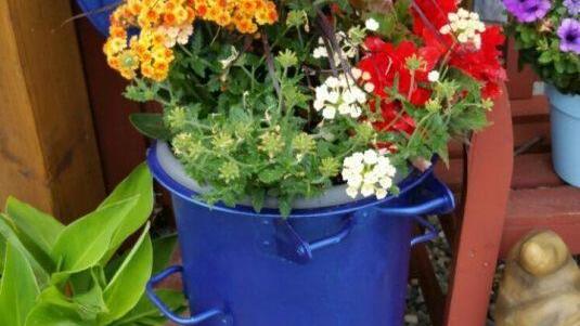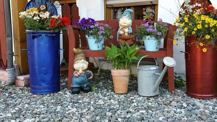 Zur Ideenbörse der Familie mit ihren zwei erwachsenen Söhnen kann da schon mal das Fernsehen oder das Internet werden. So kam es dazu, dass Paletten zu Pflanzkübeln umfunktioniert wurden. "Meine Mülltonnen habe ich im Internet gesehen", erzählt Norbert Weber. Es sei aber gar nicht einfach gewesen, die alten, runden Metalleimer aufzutreiben. Inzwischen seien solche Gegenstände gefragt. Frisch lackiert wurden sie schnell zum Blickfang. "Jetzt sehen sie sogar schöner aus als die im Internet", ist der Hobbygärtner überzeugt. Mit den Jahreszeiten und Festen wechselt ihre Bepflanzung und die Dekoration ringsherum.