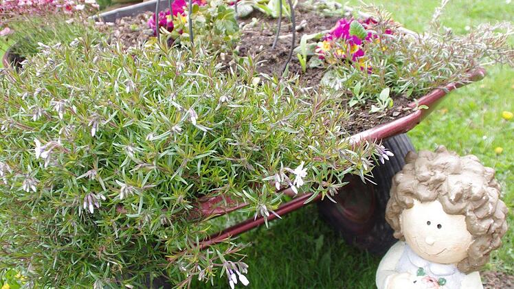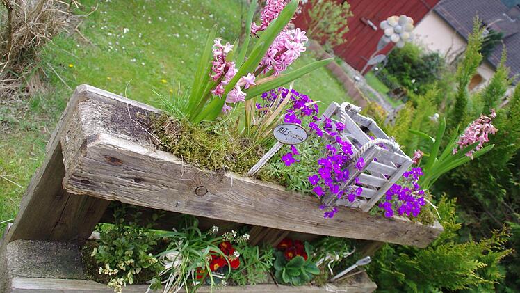 Eine alte Messingwanne und eine bepflanzte Schubkarre fügen sich bei den Webers ebenso stimmig ins Bild ein. Ideenreichtum ist allerdings auch bei den praktischeren Gartenartikeln gefragt. Norbert Weber funktioniert gerade ausrangierte Kunststoffrohre, die noch verkleidet werden, zu Hochbeeten um. "Und ein altes Hängewaschbecken richtet er mir für die Erdbeeren her", erzählt Margitta Weber.