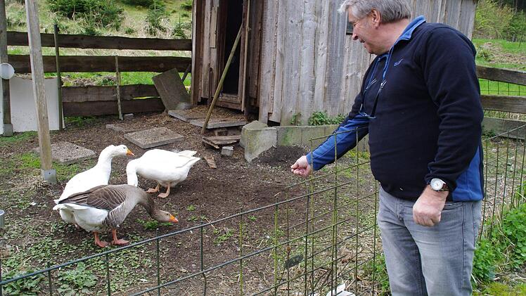 Ob der Ersatz für einen Wachhund auch ein derartiger Geistesblitz war? Einen Bello brauchen die Webers nämlich nicht, um auf ihren großen Garten aufzupassen. Dafür sorgen schon die drei Gänse. "Die schlagen sofort an, wenn jemand kommt", sagt Norbert Weber. Zum Beweis faucht der Gänserich gleich mal unseren Reporter an.