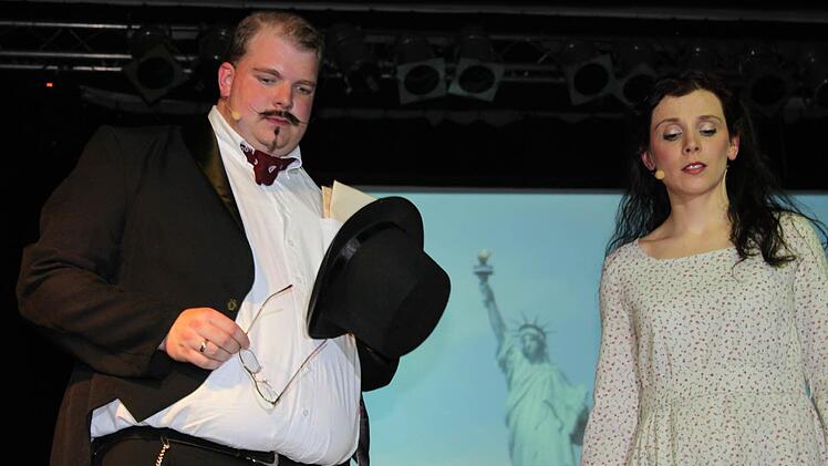 Es geht um Jules Vernes berühmte Geschichte von den Abenteuern des exzentrischen Engländers Phileas Fogg, dem Ende des 19. Jahrhunderts eine Wette zwingt, eine schnelle Weltumrundung zu schaffen. Dieses Thema hat sich das Theater- und Musicalensemble Tettau zu eigen gemacht und am Freitagabend in der Tettauer Festhalle in einer glanzvollen Premiere präsentiert. Dabei haben sie Tettauer ihre ganz eigene Version kreiert, was sich nicht zuletzt am Namen der Hauptperson ablesen ließ, die in der Version der Tettauer Willy Fogg hieß.