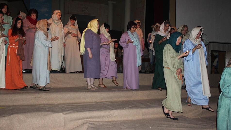 Tettau und Buchbach, unter der Leitung von Anja Knabner, stellt das Volk dar und ist vom Einzug in Jerusalem bis zur Auferstehung in das Geschehen auf der Bühne integriert. Lieder und Gesang, teilweise waren auch Solostücke darunter, gehen unter die Haut.