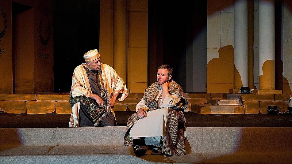 Da ist Judas, der Jesus verrät und es danach bitter bereut. Da ist Nabal der Händler (Adem Elkol), der zuvor Judas zu seinem Handeln animiert. Es gibt den römischen Statthalter Pontius Pilatus (Hans Kaufmann) und den König Herodes (Rainer Tröbs), die hier nicht unbedingt als böse Figuren charakterisiert werden können.