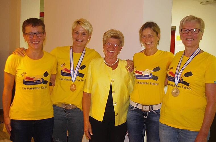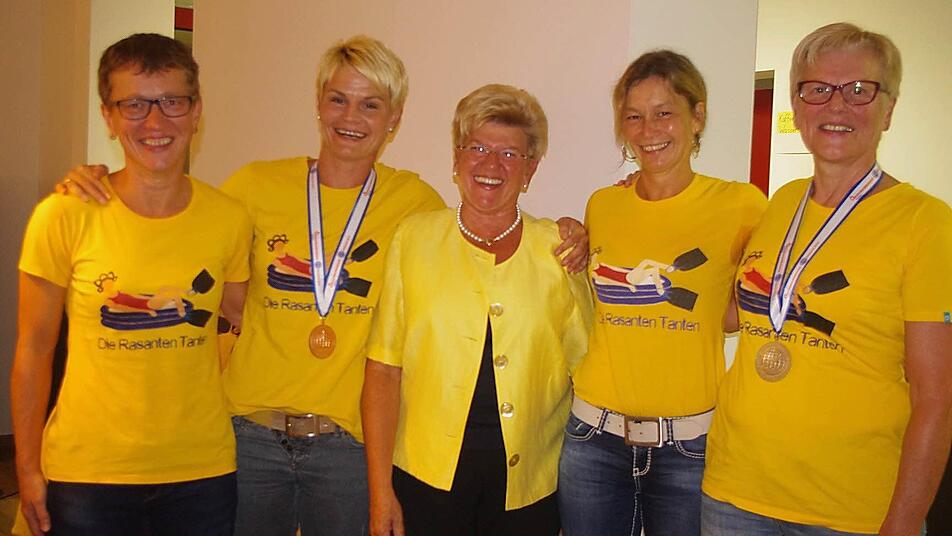 Die "Rasanten Tanten" - diesen schönen Beinamen haben sich die Teuschnitzer DLRG-Damen gegeben. Und der Name bürgt für Qualität. Barbara Neubauer, Silvia Jakob, Gabriele Grüdl und Karin Dressel nahmen, betreut von Rainer Tautz, kürzlich sehr erfolgreich an den Weltmeisterschaften im Rettungsschwimmen in Eindhoven in den Niederlanden teil. Neben vielen sehr guten Leistungen in verschiedenen Disziplinen holten sie sich bei der Aufgabe "50 Meter Retten einer Puppe"jeweils in ihren Altersklassen Medaillen. Grüdl bekam Bronze, Neubauer Silber. An der Weltmeisterschaft waren 29 Nationen mit 1046 Teilnehmern aus 218 Vereinen und fünf Kontinenten gemeldet.