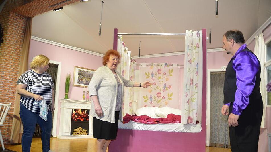 Zu ihrem 20-jährigen Bühnenjubiläum begeistert die Theatergruppe St. Wolfgang aus Stockheim bei der Premiere des Lustspiels "Ein Bett für drei".