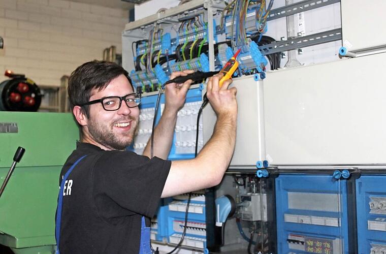 Der junge Mann findet seinen Aufgabenbereich in der Elektrowerkstatt spannend und abwechslungsreich. Zu seinem Berufsalltag gehören unter anderem die Fehlersuche bei Störungen an den Produktionsmaschinen, die Fehlerbehebung, teilweise auch die Programmierung von Anlagen. Weiterhin verlegt er Leitungen und Kabel. "Von der Glühbirne in den einzelnen Büroräumen bis zum Beitrag für einen möglichst störungsfreien Produktionsprozess reichen meine Aufgaben!"