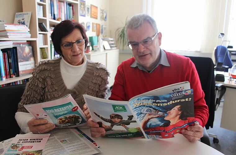 Heinz Tischer und seine Mitarbeiterin Herta Wächter stellten gestern neben den fest etablierten Sprach-, Freizeit- und Gesundheitskursen auch einige neue Schwerpunkte vor. So wird im Frühjahr 2016 "Diabetes - Theorie und Kochschule" das zentrale Thema sein.