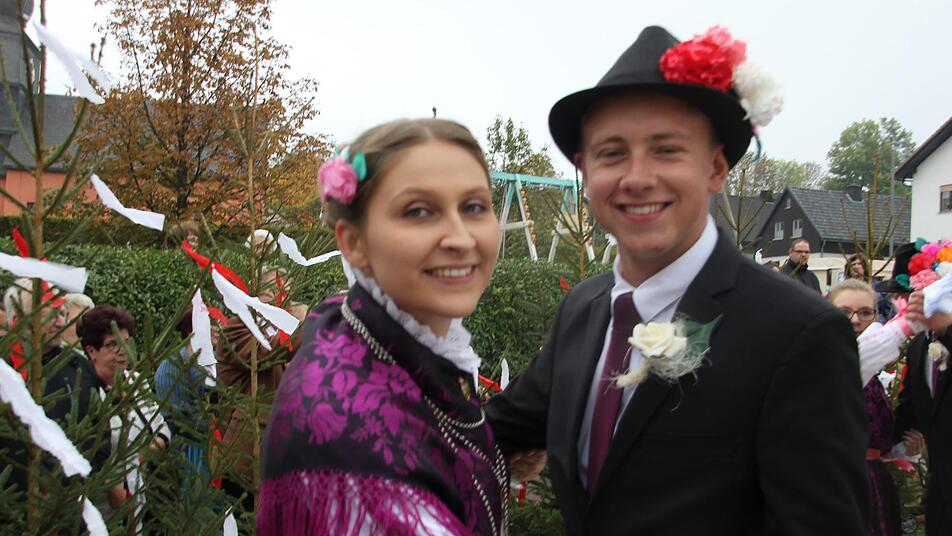 Sieben Zechpaare und vier Kellner begeisterten am Sonntagmittag mit ihrem Trachtenaufzug und dem Plantanz nicht nur die Hirschfelder, sondern auch viele auswärtige Gäste. Anwesend war auch Landrat Klaus Löffler. "Ich freue mich, dass ich in meiner Heimat an der Kirchweih teilnehmen kann!". Er lobte die jungen Leute für ihren Einsatz für die Aufrechterhaltung der Brauchtumspflege. "Es ist ein schönes Fest", freute sich auch Bürgermeister Thomas Löffler. Auch er hob das Engagement der Zechgemeinschaft hervor, ist doch die Ausrichtung der Trachtenkirchweih mit viel Arbeit und Organisation verbunden.