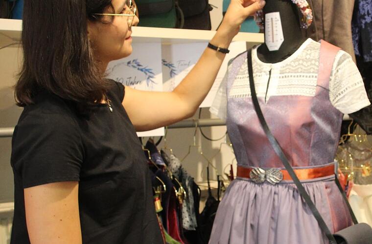 Angefangen habe damals alles mit einer kleinen Dirndl-Kollektion. "Mittlerweile können die Kundinnen ihr Dirndl durch ein Baukastensystem selbst zusammenstellen", berichtet Anna Jeske. Es könne zwischen verschiedenen Stoffen, Schnitten, Ausschnittformen und Schürzen gewählt werden.