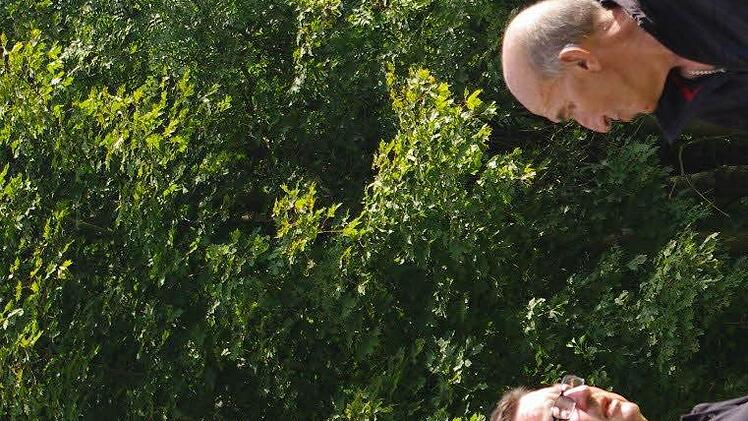 Beides musste dann von den Hunden später erschnüffelt werden - im Beisein ihrer Herrchen, die sie - ohne Kommando und Einwirkung - an der Suchleine führten.