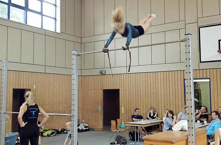 Den sportlichen Auftakt gestalteten die Mädchen und jungen Frauen vom Gerätturnen. Mit akrobatischen Einlagen an Reck und Barren beeindruckten sie die Zuschauer, und als besondere Highlights wurden Flick-Flacks und Saltos gezeigt.