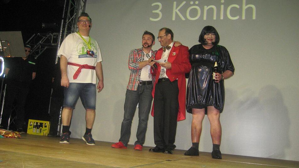 Die "Nochbern" zeigten dann ihre Körpermasse, im Anfang waren es nur die "Aang" und die "Ohrn", und jetzt hatte der ganze Körper zugelegt. Trotzdem wirbelten sie über die Bühne. Über das Teuschnitzer Stadtgeschehen berichteten die drei Könige. Sie nahmen kein Blatt vor dem Munde. Im Visier hatten sie das Dorffest und die Stadtkapelle mit dem Trommelmeister Martin Sesselmann und Dirigenten Bernd Jungkunz.