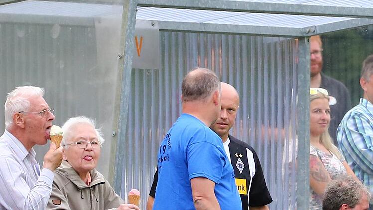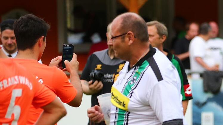 Die Gäste vom beliebten, grün-weißen Traditionsklub steigerten sich aber im zweiten Durchgang und kamen gegen die munter durchwechselnden Gastgeber, die nicht weniger als insgesamt 19 Spieler einsetzten - darunter auch sieben Mitglieder des Gladbach-Fanclubs - noch zum Ausgleich. Peter Wynhoff hatte mit einem verdeckten Schuss gegen Torwart Siegfried Kirschbauer Glück, ansonsten war der Friesener "Oldie" im Kasten der Auswahl nicht zu überwinden.