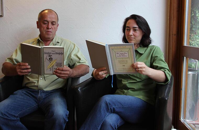 Der Erste Weltkrieg begann vor genau 100 Jahren. Daran erinnern sich Ulrike von Prince und ihr Mann Peter, als sie im Aparthotel in Faksimile-Ausgaben von Büchern blättern, die vor über 100 Jahren erschienen sind. Die Bücher wurden von den Urgroßeltern von Ulrike von Prince geschrieben: Tom von Prince und dessen Frau Magdalene, geb. von Massow. Die Original-Ausgaben der Bücher befinden sich im Besitz der Eltern von Ulrike von Prince in Südafrika.