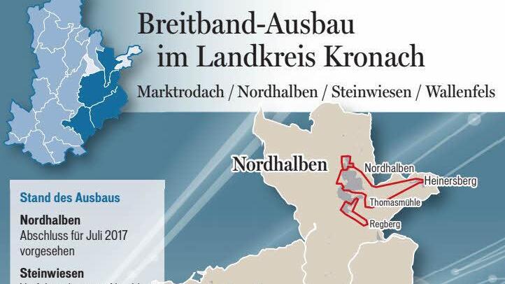 Bereits mit über 30 Mbit/s versorgt war das westliche Nordhalben, das deshalb im Förderverfahren ausgeklammert werden musste. Begonnen hat der Ausbau im Naturpark Frankenwald noch nicht, die Planungen aber stehen. Ab Juli 2017 sollen die Nordhalbener das neue Netz nutzen können.