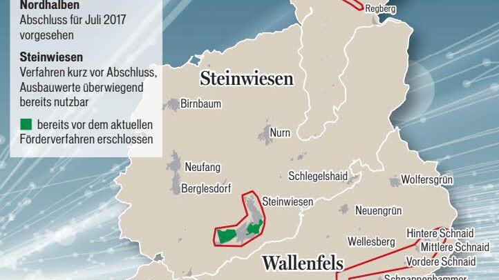 Andere Flächen waren schon vor dem aktuellen Ausbau erschlossen. Der Wallenfelser Westen durch die Telekom sowie Wolfersgrün und Neuengrün durch die Thüga.