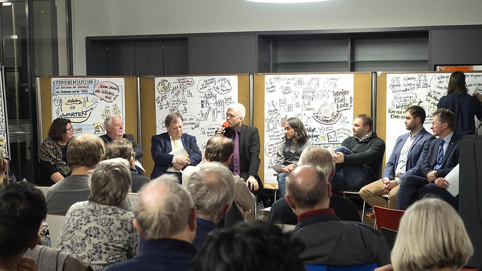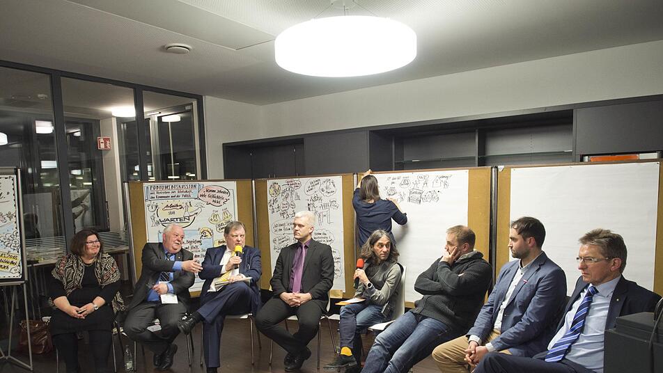 Im Publikum befanden sich viele, die sich ehrenamtlich oder hauptamtlich um geflüchtete Menschen kümmern. Sie sind nah dran an deren täglichen Problemen und sprudeln über von pragmatischen Ideen, die Flüchtlingen wie Unternehmen helfen würden. Etwa ein leichter Zugang zu Praktika, Schnupperlehren, Hilfstätigkeiten in der Gemeinde oder in Handwerksbetrieben. Mohammad Abu-Ta'a aus Ludwigsstadt bringt es auf den Punkt: "Wollen wir Flüchtlinge halbherzig oder voll integrieren?" Eine Arbeitsstelle für Erwachsene sei sinnvoller als ein Sprachkurs und Kinder sollten schnell in die Schule kommen. Langeweile führe zu Frust, Aggression und seelischer Krankheit.