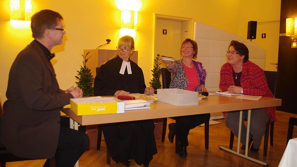 Es war eine ungewöhnliche "Kirchenvorstands-Sitzung", der die Mitarbeiter des Dekanatsbezirks Kronach-Ludwigsstadt am Samstag im Kronacher Schützenhaus beiwohnten: Pfarrer Martin Gundermann als überkorrekter Kirchenpfleger "Pfennigfuchs", Sabine Alfort als "Pfarrerin", die mit den Kirchenvorständen - Pfarrerin Alina Ellgring und Susanne Bächer - Anstehendes wie "Tierbibeltage" oder "Tierturnen" stets auf die nächste Sitzung verschiebt. Ob es mancherorts tatsächlich so zugeht oder ob das Theaterensemble "leicht" übertrieben hat, sei dahingestellt. Ähnlichkeiten mit tatsächlichen Vorkommnissen seien aber gewiss vorhanden, so Dekanin Dorothea Richter zu Beginn der Dekanatssynode schmunzelnd.
