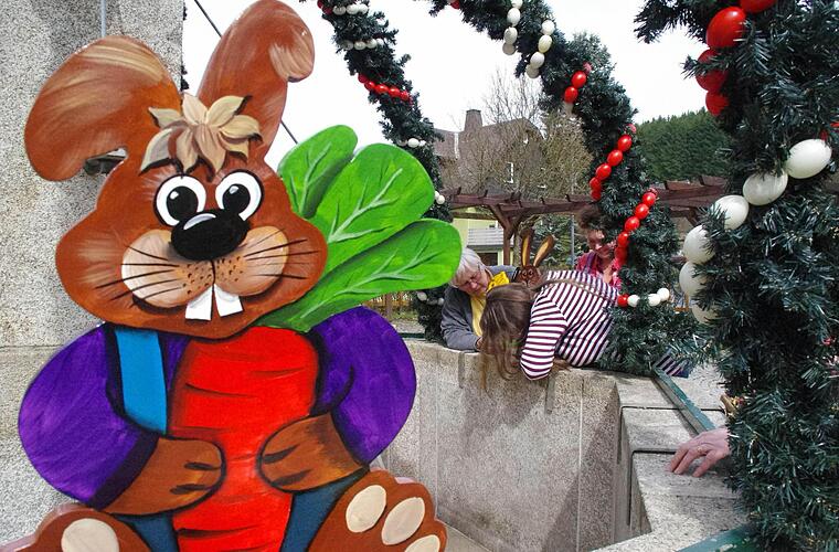 Viel Grün und viele Blumen werden die Mümmelmänner vor vor ihren Näschen haben. Denn die vier Hasen schmücken in den kommenden Wochen den Osterbrunnen in der Ortsmitte. Zur 500-Jahr-Feier haben sich die fleißigen Helfer nämlich entschlossen, den Brunnen neu zu gestalten.