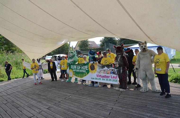 Um an die große Benefizveranstaltung zu erinnern, die bisher seit 17 Jahren mit großen Rahmenprogramm auf dem LGS-Park und der Seebühne stattgefunden hat, trafen sich das Organisationsteam des Vereins, die Sportgruppen und die Schirmherren am LGS-Gelände. Sie zogen Bilanz über die wegen der Corona-Pandemie erschwerte Organisation. "Hoffentlich bleibt dies der einzige virtuelle Lauf in der Vereinsgeschichte", so Dritter Vorsitzender Günter Landgrafe bei der Begrüßung.