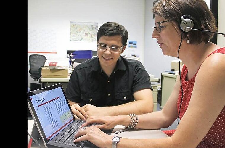 Zwischendurch ist er Schüler im virtuellen Klassenzimmer. "Das ist fast wie ein normales Klassenzimmer." Vorn an der Tafel stehen sein Lehrer beziehungsweise seine Lehrerin und bringen ihm voller Elan die Lerninhalte von Fächern wie Deutsch, Englisch, Mathematik näher. Sehen können die Lehrer Jonas Barnickel nicht, auch er kann sie nicht sehen. Aber er kann Fragen stellen. Auch außerhalb der "Unterrichtszeiten" kann Jonas Barnickel sich mit seinen Anliegen per Mail an die entsprechende Lehrkraft wenden. Geantwortet wird immer zeitnah.