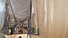Kahle Rigipswände trennen den Essbereich von einer Toilette, die vor einiger Zeit nur ein Plumpsklo hatte und heute noch immer nicht über ein Waschbecken verfügt; aus einem Maler-Eimer muss das kalte Wasser für die Körperhygiene geschöpft werden. Die Fenster bestehen nur aus einfachen, meist schon gesprungenen Scheiben, und die Terrasse bricht in sich zusammen.