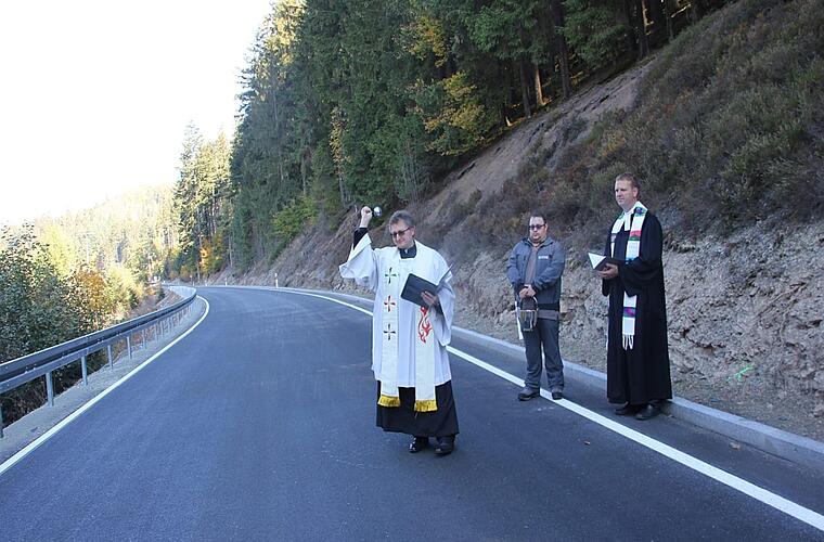 Mit der Verkehrsfreigabe der Gemeindeverbindungsstraße von Schnappenhammer nach Wolfersgrün wurde die schnellste Verbindung von der B 173 aus zu dem Wallenfelser Gemeindeteil geschaffen. Und, so brachte es Pater Jan Poja am Freitagmittag auf den Punkt: "Es wurde ein wunderschönes Stück Natur erschlossen!"