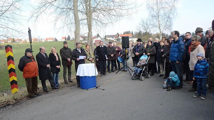 Zu den Klängen des Musikvereins Neuhaus-Schierschnitz kam sogar fast Kerwastimmung auf und bei "Tief im Frankenwald" wurde laut mitgesungen. Die Gäste zogen vom Gedenkstein aus hinunter in den thüringischen Ort Rotheul, wo gefeiert wurde wie damals.