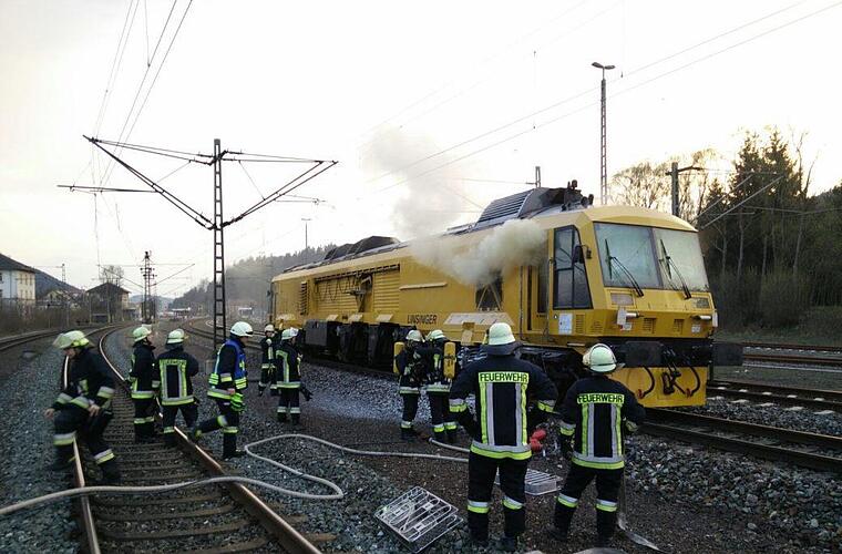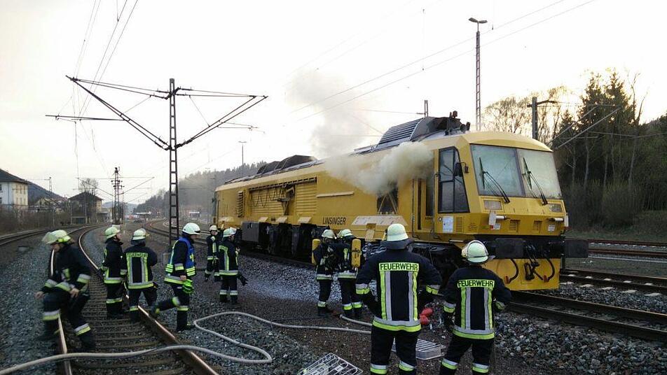 Am Bahnhof Pressig-Rothenkirchen im Landkreis Kronach ist am Sonntagabend ein Waggon eines Bauzuges in Brand geraten.