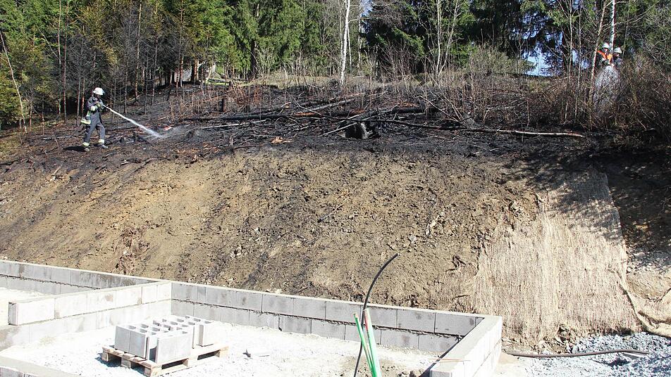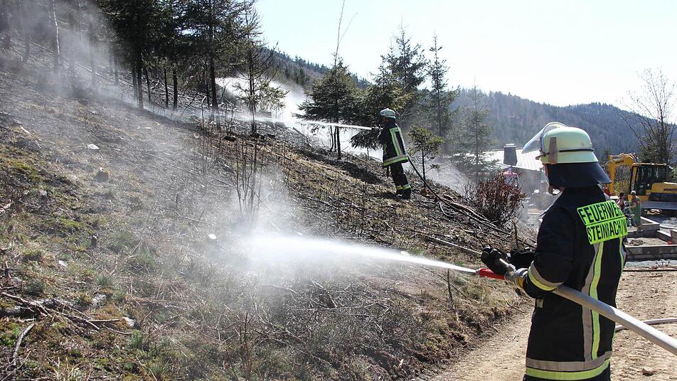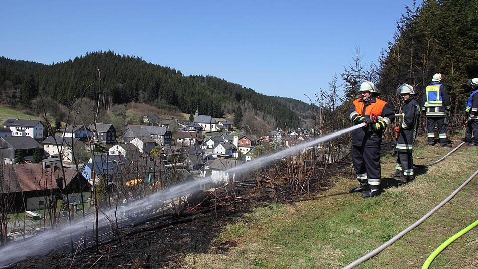 Die Feuerwehren aus Förtschendorf, Steinbach am Wald und Teuschnitz konnten die Flammen am Steilhang löschen, bevor das Feuer auf den angrenzenden Hochwald übergriff.