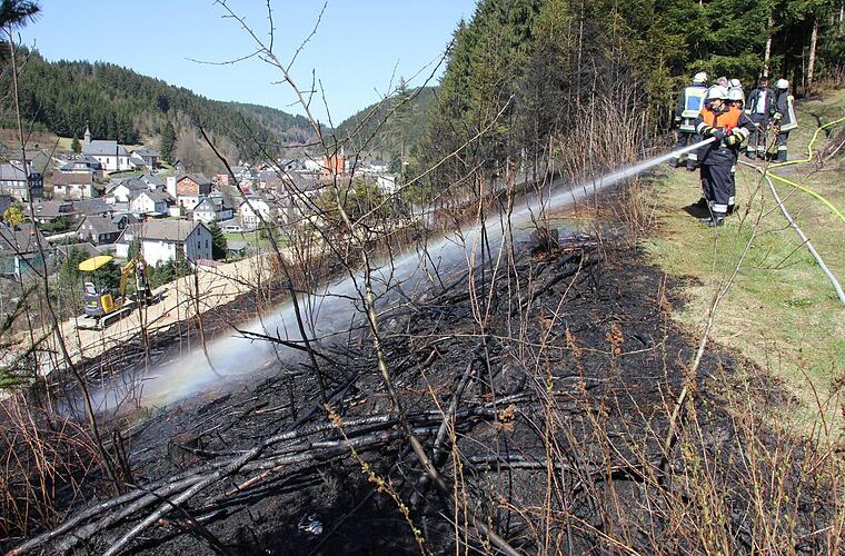 Am Mittwoch brannten mehrere Hundert Quadratmeter Hangfläche in Förtschendorf. Das Feuer entstand wahrscheinlich durch Funkenflug beim Flexen. Die Wehrleute hatten einen schwierigen Einsatz, konnten die Flammen aber schnell löschen.
