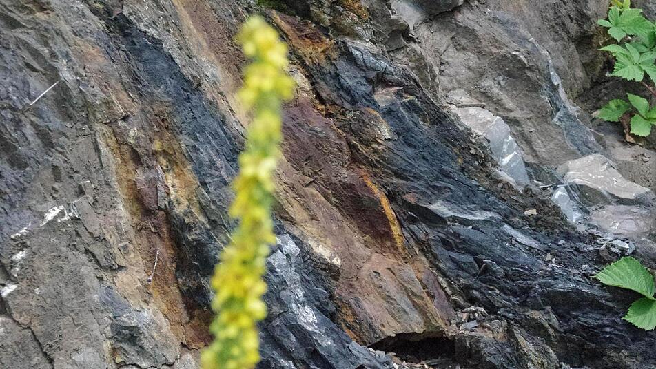 Blick geht Millionen Jahre in die Vergangenheit Dass am Silberberg einiges los war, zeigt sich an vielen Stellen. Am Fuß des Berges, nahe dem Rastplatz an der Bundesstraße 173, zeigt Tragelehn eine Stelle in der Felswand, an der sich rotbraunes Gestein mit schwarzem abwechselt. Dort hat es ein "Kellwasser-Ereignis" gegeben. "An der schwarzen Stelle starben viele Tiere aus", blickt Tragelehn in eine Zeit vor rund 370 Millionen Jahren zurück, die sein wissenschaftliches Steckenpferd ist. Warum es in der Periode des Oberdevon zu diesem Aussterben gekommen ist, kann laut Tragelehn noch nicht mit Gewissheit gesagt werden.