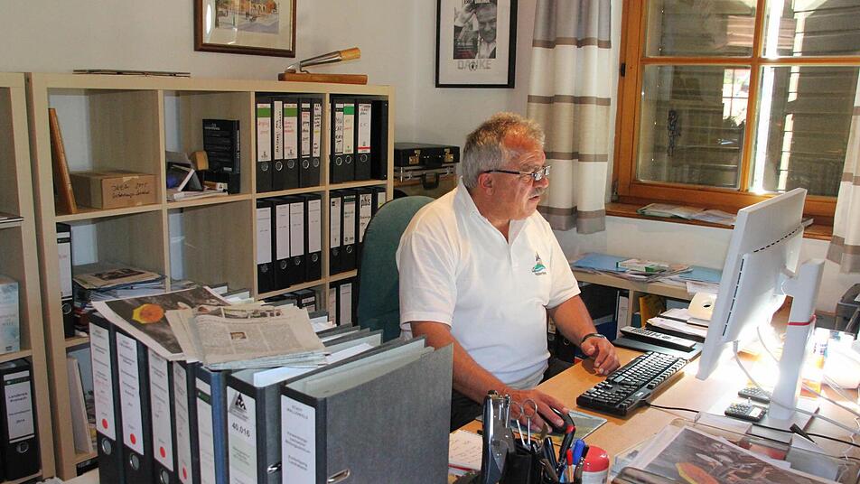 Ganz so stressig wie früher sind die "Arbeitstage" für den ehemaligen Bürgermeister der Flößerstadt nicht mehr, aber er hängt sich noch mächtig rein. Beispielsweise beim Bildungszentrum Wallenfels. Dessen Finanzierung hat er auf die Beine gestellt und dessen Abfinanzierung möchte er gerne zu Ende bringen. An ihm liegt es nicht, dass die Sache noch nicht abgeschlossen ist. Verwendungsnachweise müssen von öffentlichen Stellen noch geprüft werden. Eine Reihe von sieben Leitz-Ordnern steht deshalb noch immer auf seinem Schreibtisch daheim.