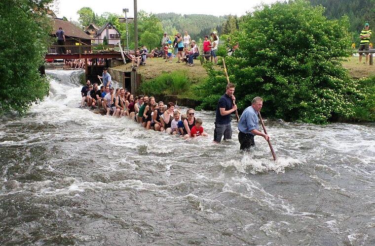 Die Wallenfelser Flößer haben mit ihren 200 Gästen ihr erstes spritziges Abenteuer in diesem Jahr erlebt. Es liegen bereits weitere 5000 Anmeldungen vor.