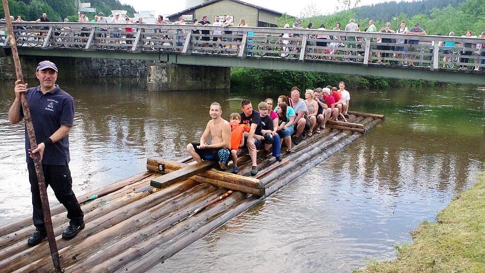 Aufgrund der aktuellen TÜV-Auflagen erhielten die Kinder unter zwölf Jahren erstmals Schwimmwesten. Und erstmals war es möglich, im "Flößerlädla" Souvenirs zu kaufen. Schon beim Start am Samstag konnten auf zwölf Floßböden 200 erwartungsfrohe Besucher auf die Reise geschickt werden. Sechs spektakuläre Wehrdurchfahrten sorgen dafür, dass niemand trocken vom Floß steigt. Ein besonderer Gag ist der feucht-fröhliche Abschied aus dem Junggesellenleben. Und der FC Wallenfels feierte auf dem Floß den Aufstieg in die Kreisliga. Ein treuer Fan ist Harald Richter aus Nürnberg, der nun bereits zum zehnten Male Präsenz in Wallenfels zeigte. Mit dabei war auch ein Gewinner aus der bayerischen Fernsehsendung "Wir in Bayern", und zwar Fred Mergner aus München.