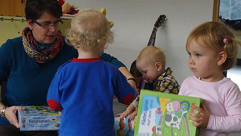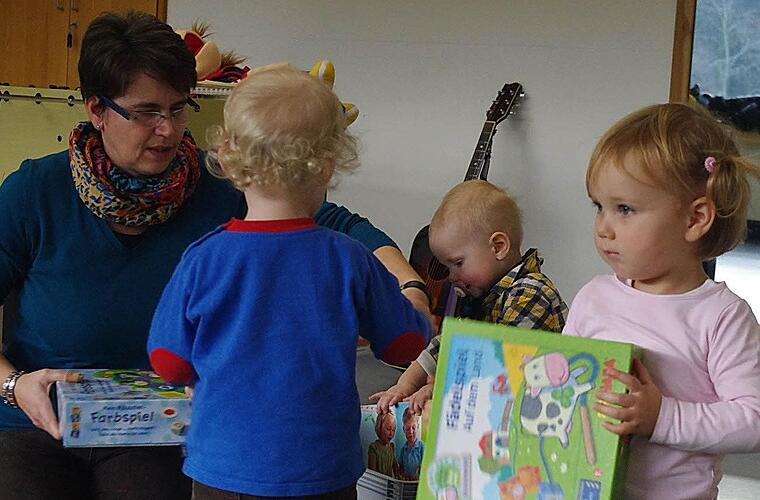 Die Ökumenische Arbeitsgemeinschaft für Eltern-Kind-Gruppenarbeit stellte bei der der Muki-Gruppe Wallenfels ihr neuestes Angebot vor: Eine Spiele-Leihkiste.