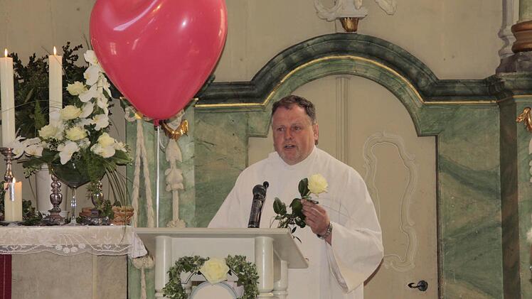 Pastoralreferent Josef Grünbeck hatte eine weiße Rose in der Hand, als er in seinen Ausführungen auf die Bedeutung dieser im Sinne des Glaubens einging. Die Rose gehört zu den ältesten Kulturpflanzen der Menschheit und ist bereits in der mittelalterlichen Mystik in der Bildsprache ein Sinnbild göttlicher Liebe zur Metapher für Maria, die Mutter Jesu geworden.