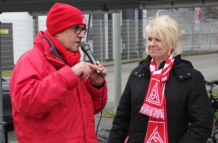 Betriebsseelsorger Eckhardt Schneider sicherte den Valeo-Beschäftigten Unterstützung zu. Durch den Warnstreik verliehen sie ihren berechtigten Forderungen Nachdruck.