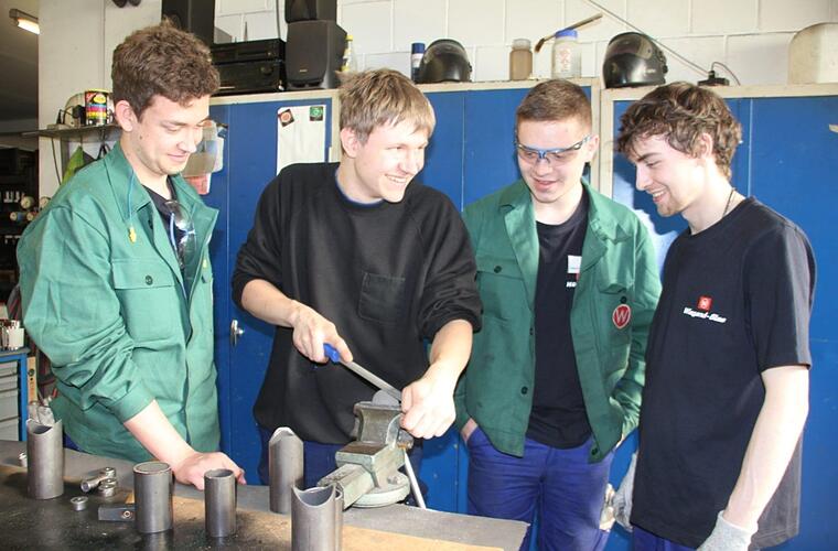 Einer der Paten ist Marc Feuerpfeil. Eine Patenschaft bedeutet für den angehenden Elektroniker/Betriebstechnik, dass er - in seinem Fall - den englischen Gästen einen Einblick in seinen Berufsalltag gewährt. Dazu gehört unter anderem Fräsen, Schweißen, das Prüfen von System