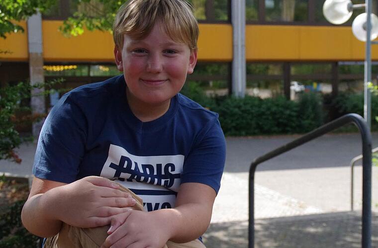 Alexander selbst ist froh, den Sprung ans Gymnasium geschafft zu haben. Jetzt muss er nicht mal mehr mit dem Bus fahren, liegt das Schulzentrum doch vor seiner Haustür. Der Hauptgrund für den Wechsel ans FWG war das natürlich nicht. "Ich wollte schon immer ans Gymnasium. Und ich finde es auch toll, dass sich mein Papa so darüber gefreut hat", erklärt er. Dabei ist ihm klar, dass er jetzt am Ball bleiben muss. Schließlich warten viele Fächer auf ihn. "Ich freue mich besonders auf Englisch. Das will ich gut können. Etwas Schiss habe ich aber schon, weil es heißt, dass Englisch am Gymnasium schwer ist." Doch die Fremdsprache ist nicht der einzige Unterricht, auf den er hinfiebert. Auch Sport steht bei ihm hoch im Kurs.