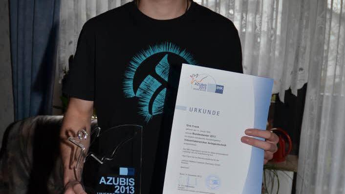 Der Auszubildende erhielt für seine Top-Leistung als Anerkennung von der Regierung von Oberfranken eine Urkunde, unterzeichnet von Regierungspräsident Wilhelm Wenning, die Bayerische Staatsregierung übermittelte Glückwünsche, von der Industrie- und Handelskammer für Oberfranken gab es das hervorragende Abschlusszeugnis und vom Deutschen Industrie- und Handelskammertag in Berlin wurde der junge Mann in der Bundeshauptstadt gesondert geehrt und mit Urkunde und mit einem Glaspokal ausgezeichnet.