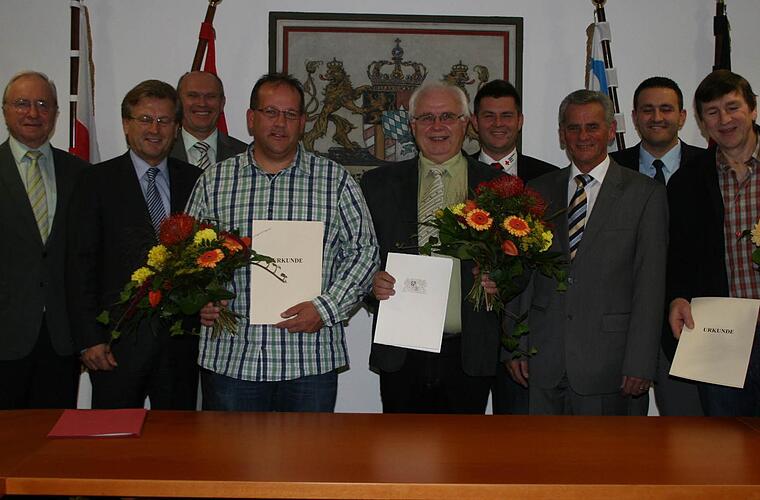 Leonhard Welscher bekam das Ehrenzeichen des Bayerischen Ministerpräsidenten Horst Seehofer für Verdienste im Ehrenamt von Landrat Oswald Marr (SPD) ausgehändigt.