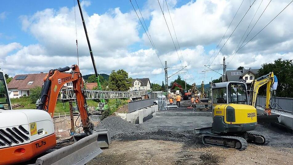 Über das neue Bauwerk in Stockheim konnten am Sonntagabend - wie geplant ab 22 Uhr - wieder Züge fahren.