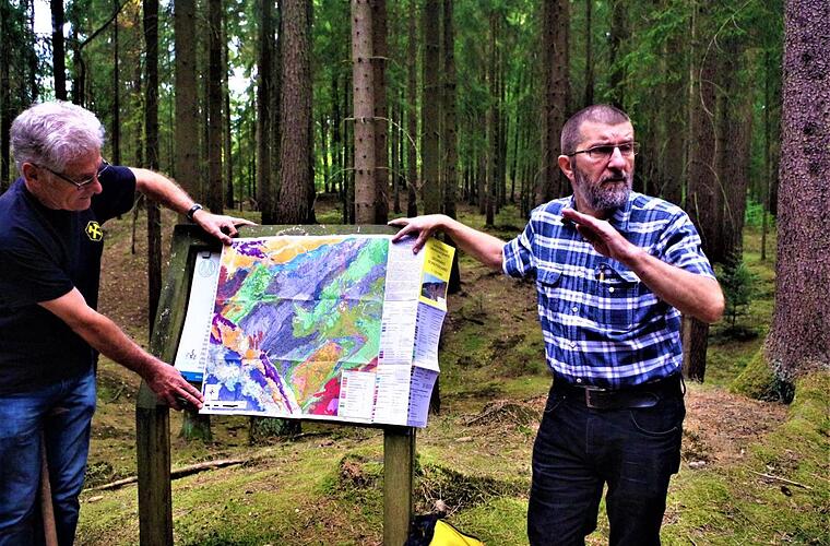 Zwei Experten informierten beim Bergmannsfest über geologische Kostbarkeiten im Frankenwald, dessen Untergrund sich einst am Äquator befand.