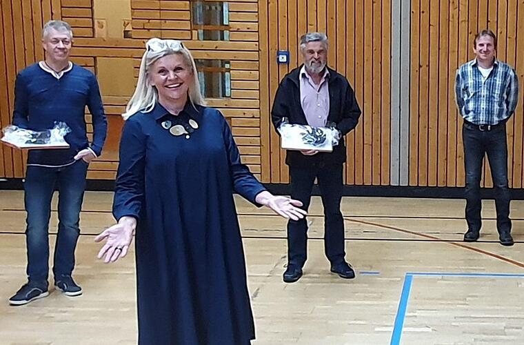 Der Abschied von ihren Weggefährten fiel Susanne Grebner offensichtlich sehr schwer. "Verabschiedungen können und dürfen in dieser Zeit nicht so sein, wie es würdig wäre. Es war eine gute Zeit, in der wir freundschaftlich und in Harmonie zusammengearbeitet haben mit Menschen, die uns über viele Jahre begleiteten." Sie sprach von Herzblut, Engagement und davon, dass man eine ehrenvolle Aufgabe übernommen habe, die nicht immer einfach gewesen sei: "Wird man zum Beispiel auf einem Fest angesprochen, dann kann das nett sein und daraus kann sich ein schönes Gespräch ergeben. Das kann einem den Tag versüßen, man kann sich aber in einer solchen Situation auch schwarz ärgern." In letzter Konsequenz überreichte sie deshalb den ausscheidenden Gemeinderäten nicht "irgendeinen Staubfänger", sondern eine süße Überraschung und "Schwarzgeraachertes".