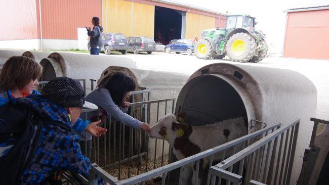 Mit großen Augen stehen die Jungs und Mädchen an diesem Donnerstagvormittag im Milchviehstall. Wie es der Zufall so wollte, stand einen Tag vorher ein freudiges Ereignis an. Ein Kälbchen kam auf die Welt, das nun selig neben seiner Mutter im warmen Stroh schlummert. Das Kälbchen kommt noch nicht in den Genuss von Liebkosungen der Schulkinder - im Gegensatz zu den schon etwas älteren Kälbchen in ihren Iglus, die ihre zusätzlichen morgendlichen Streicheleinheiten sichtlich genießen. "Dich würde ich am liebsten mit nach Hause nehmen", war dann auch der am meisten gesagte Satz beim Besuch der über 20 Dritt- und Viertklässler. Mit ihrer Lehrerin Jenny Richter statteten diese am Donnerstag - im Rahmen der Umwelttage an der Grundschule