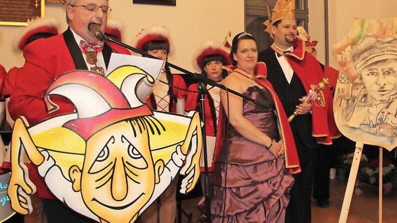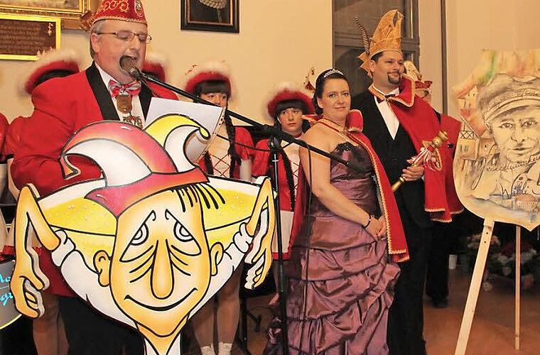 Sitzungspräsident Georg Löffler stellte das neue Prinzenpaar vor. Der Großmeyster der Rytterschaft zum Goldenen Turm zu Cranaha, Sigi "die Kleidermotte" Mayer, führte Stefan II. und Caro I. in ihr Amt ein. Er blickte zurück, dass er vor 27 Jahren selbst Prinz gewesen sei.