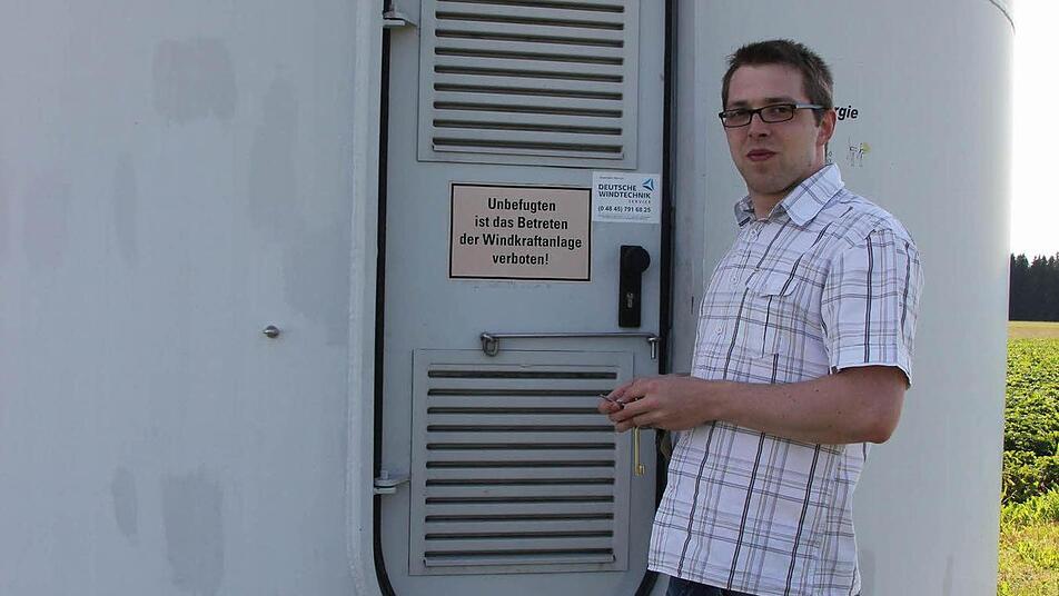Auch als der Lüfter abschaltet, ist das Rascheln der Blätter an den Hecken und Bäumen ringsum besser zu hören als das Rauschen der Rotorblätter. Und das, obwohl es viel modernere Anlagen als die im Windpark Himmelreich gibt. "Die neuen Rotoren sind flexibler und aerodynamisch gut gestaltet", weiß Georg Hofmann. Die Argumente der Windradgegner hinsichtlich Vogel- und Eisschlag kann Georg Hofmann nicht nachvollziehen. Er selbst hat am Himmelreich noch keinen toten Vogel unter den Windrädern gesehen. "Vor und hinter den Rotorblättern gibt es Luftverwirbelungen. Das merken die Vögel und halten Abstand", weiß er. Wenn sich Eis an den Rotoren zu bilden beginnt, registriert das ein neuartiger Laserscanner und bremst die Flügel sofort ab, bis das Eis weg ist.
