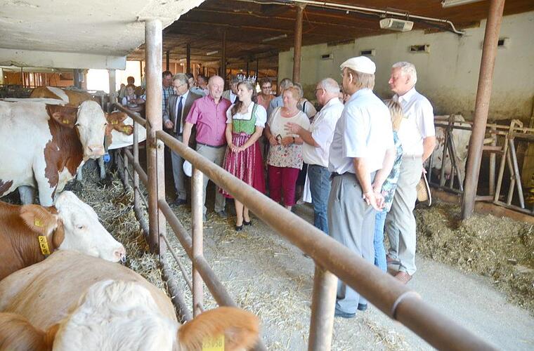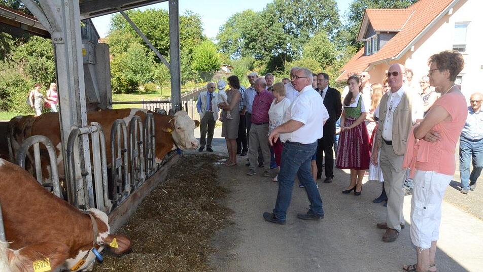 Und so führte BBV-Kreisobmann Erwin Schwarz über seinen Hof in Burggrub. Dabei zeigte er die verschiedenen Stallarten und gab einen Einblick in die Tierhaltung. Etwa durfte der Melkstand besichtigt werden. Aufgebaut waren auf dem Hof zudem einige Informationsstände, die die richtige Fütterung und Nahrung von Milchvieh näherbrachten.