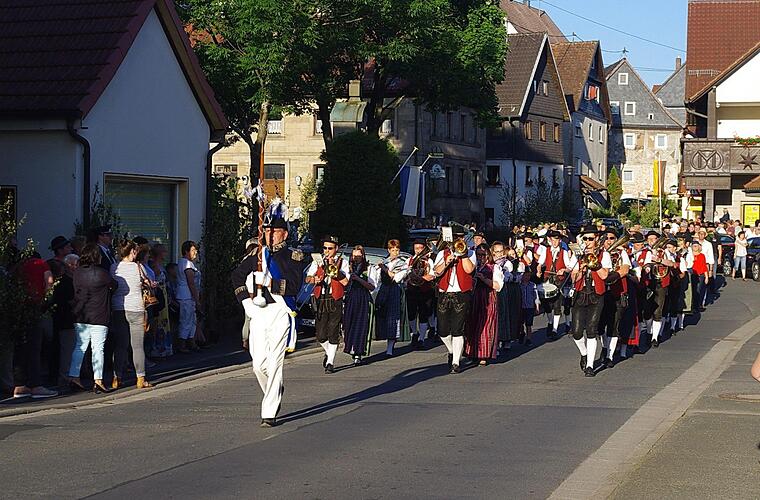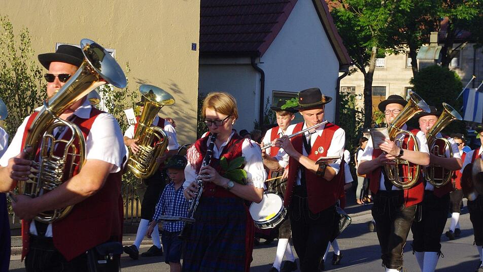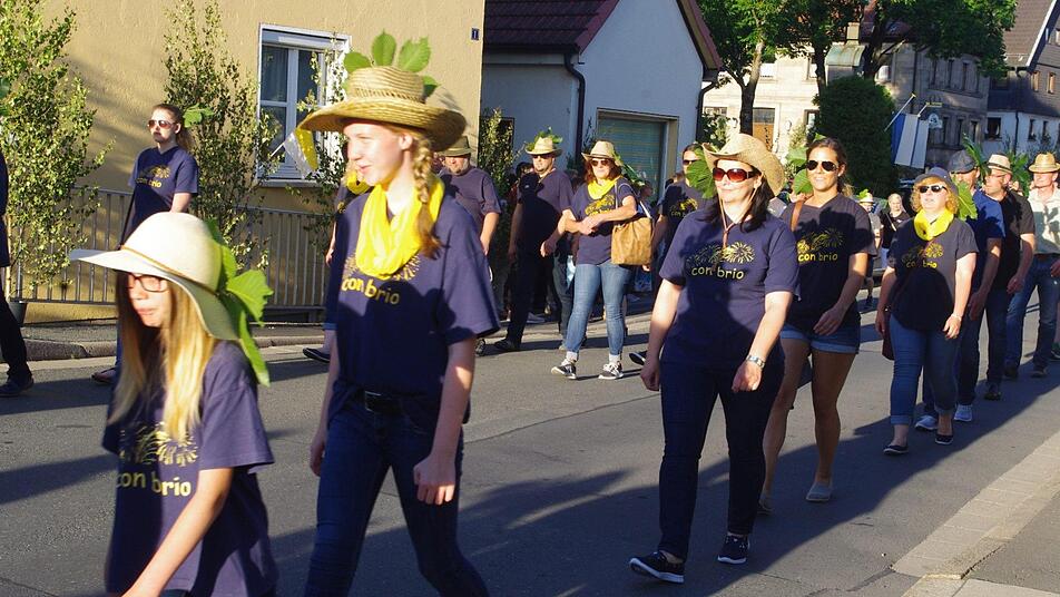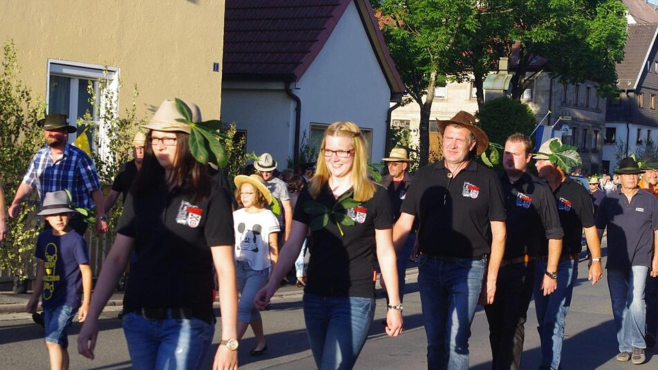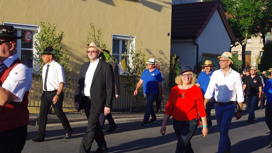 Für ihr Kommen wurden die Gäste mit einem farbenprächtigen Anblick belohnt. Neben kirchlichen und politischen Vertretern - allen voran Pfarrer Sven Raube, Kronachs Bürgermeister Wolfgang Beiergrößlein und Stadträten - beteiligten sich auch viele Vereine und Gruppierungen an dem gelebten Stück Heimatkultur. Zur Tradition gehört es auch, dass die Teilnehmer ein Kastanienblatt an ihre Hüte, ihr Revers oder wo halt gerade "Platz" ist, heften. Was es mit dem Ritual genau auf sich hat, war trotz Recherche nicht in Erfahrung zu bringen. Doch dass der Hintergrund, beziehungsweise die Bedeutung dieses schönen Brauchs, nicht mehr in Erfahrung zu bringen ist, stört niemanden in Friesen. Für die stimmige Umrahmung sorgte der Musikverein Friesen. Die Musiker führten den Zug an, sie spielten mit zünftigen Militärmärschen auf und brachten schließlich auch den "Engel des Herrn" musikalisch zum Klingen.