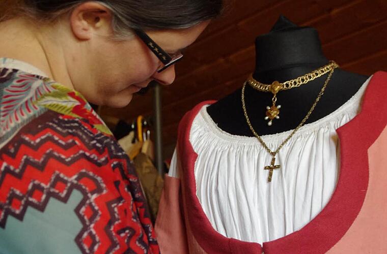Tina Vadász-Hain zieht den Gürtel an ihrem Gewand auf der Kleiderpuppe zurecht. Dann steckt sie das Brustband ein. Nun fehlt zum Kleid nur noch die Haube. Dahinter steckt ein kleines Geheimnis. Die Wulsthauben aus der Renaissance sind zwar auf vielen historischen Bildern zu sehen, aber nirgendwo wird gezeigt, wie es zu ihrer heiligenscheinartigen Wulstung kommt. "Das herauszufinden, ist experimentelle Archäologie. Das ist eine detektivische Arbeit, die mir riesigen Spaß macht", erklärt die Leiterin des Arbeitskreises Flores Artium ("Die Blüten der Künste") des Historischen Vereins Kronach.